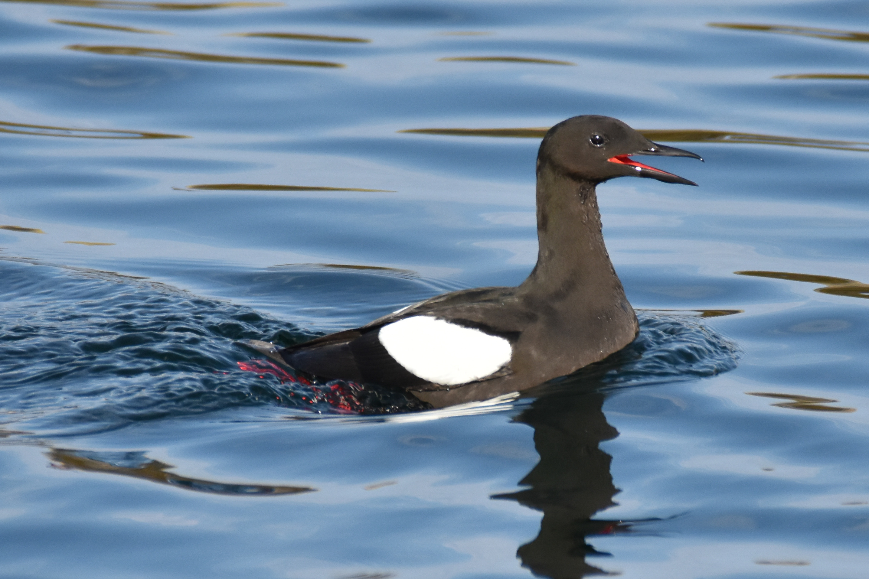 Hittills skulle man kunna tro att vi är på fågelskådarsafari. Vid ankringsplatsen på Sklinna har vi första parkett till de små fågelbergen där framförallt sillgrissla och toppskarv trängs om platsen på klipporna. I vattnet simmar mängder av sillgrisslor, lunnefågel, tordmule samt en och annan tobisgrissla. I luften pilar de fram och tillbaka med sina små vingar som även fungerar när vi ser dem simmande under vattnet. Havsörnen visade sig även här.