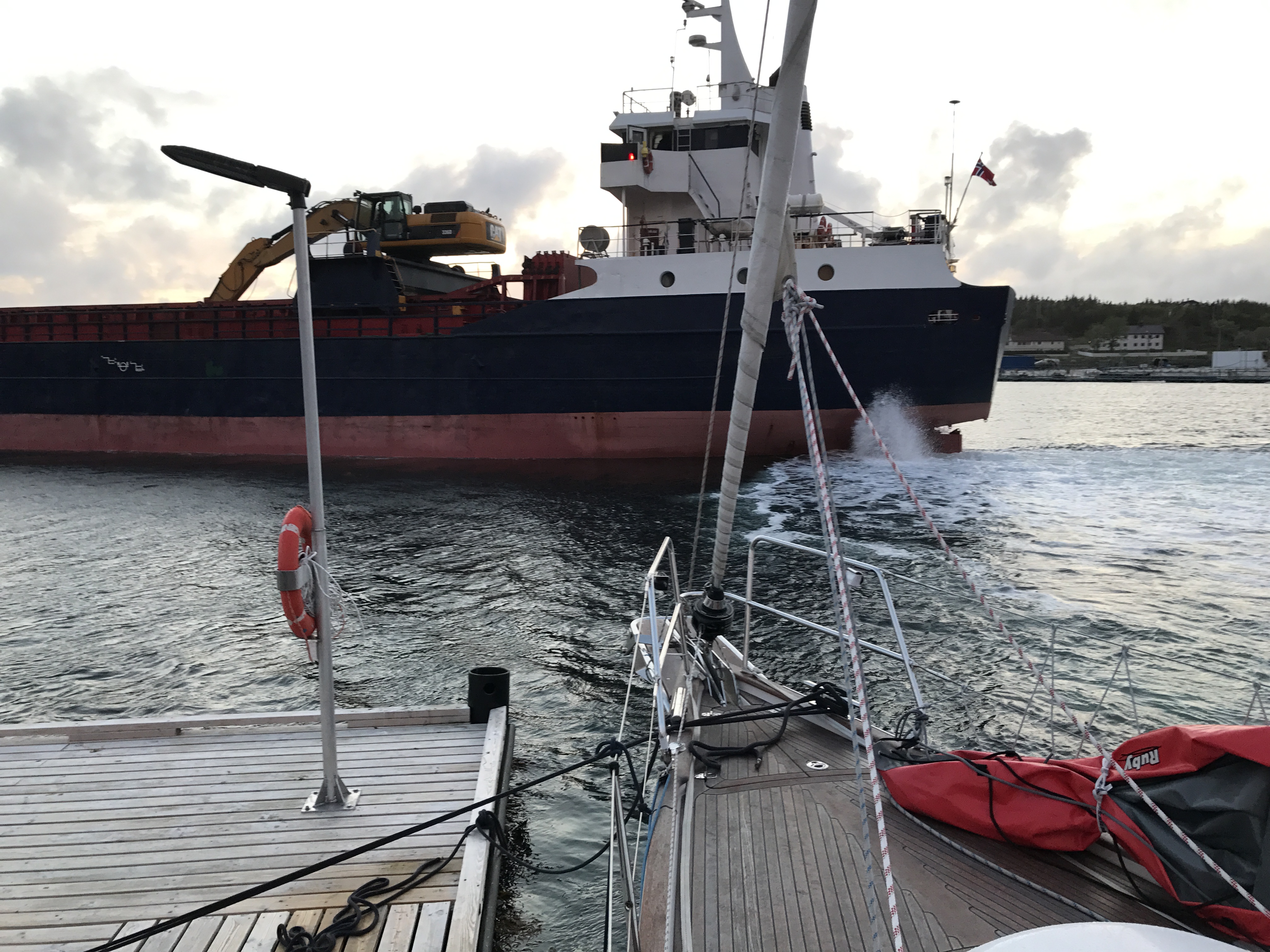 Jag funderade på om dieseln skulle räcka, men halv tank kvar när jag kom fram ;-). Hade följe ganska länge med en motorseglare som inte hade några segel uppe. Precis i hamn hörde jag hur sjöräddningen pratade på VHFn om en motorseglare som fått motorproblem och behövde bogsering utanför Lindesnäs. Han kunde inte uppge sin position, och hade nog inte kunskap om Distress-knappen på VHFn. Den får vi gå igenom med alla gastar nästa år! Spangereidkanalen går på baksidan av Lindesnäs så man slipper den beryktade passagen, men segelfri höjd är bara 4,5 m. Den har funnits sen 700-talet, så Lindesnes har nog alltid ingivit respekt.